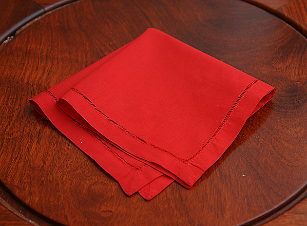 True Red color Hemstitch Handkerchief