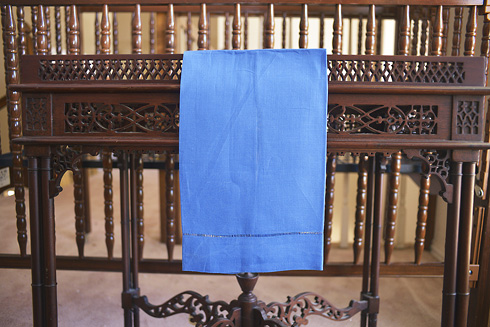White Hemstitch Guest Towel with Pink Flambé colored borders