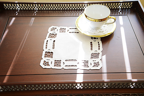 | 14" square -placemat / napkin | US$ 84.00 /dozen | White color & Pearled Ivory color. |