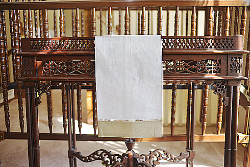 White hemstitch guest towel with Fern Green (Xmas Green) Color Border